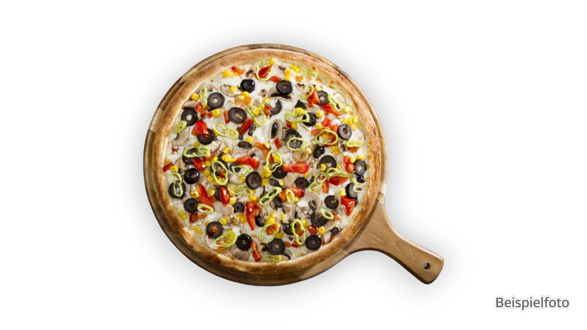 alle Pizzen werden in einer Größe deiner Wahl serviert und mit Tomatensoße, Käse und Oregano zubereitet
