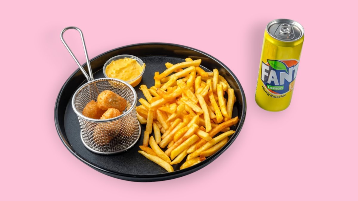 alle Menüs werden mit Pommes frites und einem Getränk deiner Wahl serviert
