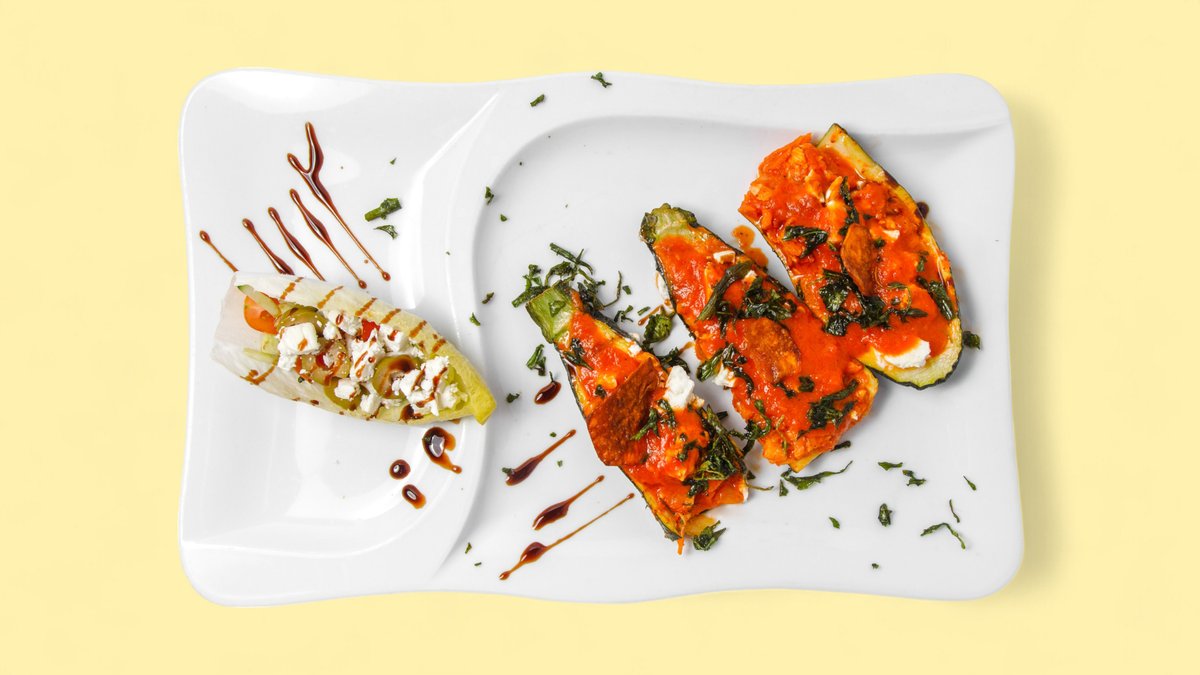 Minz-Cous Cous mit Granatapfelkernen Kartoffeltortilla Pimientos de Padrón Oliven gebackener Feta Pfannengemüse Kartoffeln mit Salzkruste Gemüselasagne