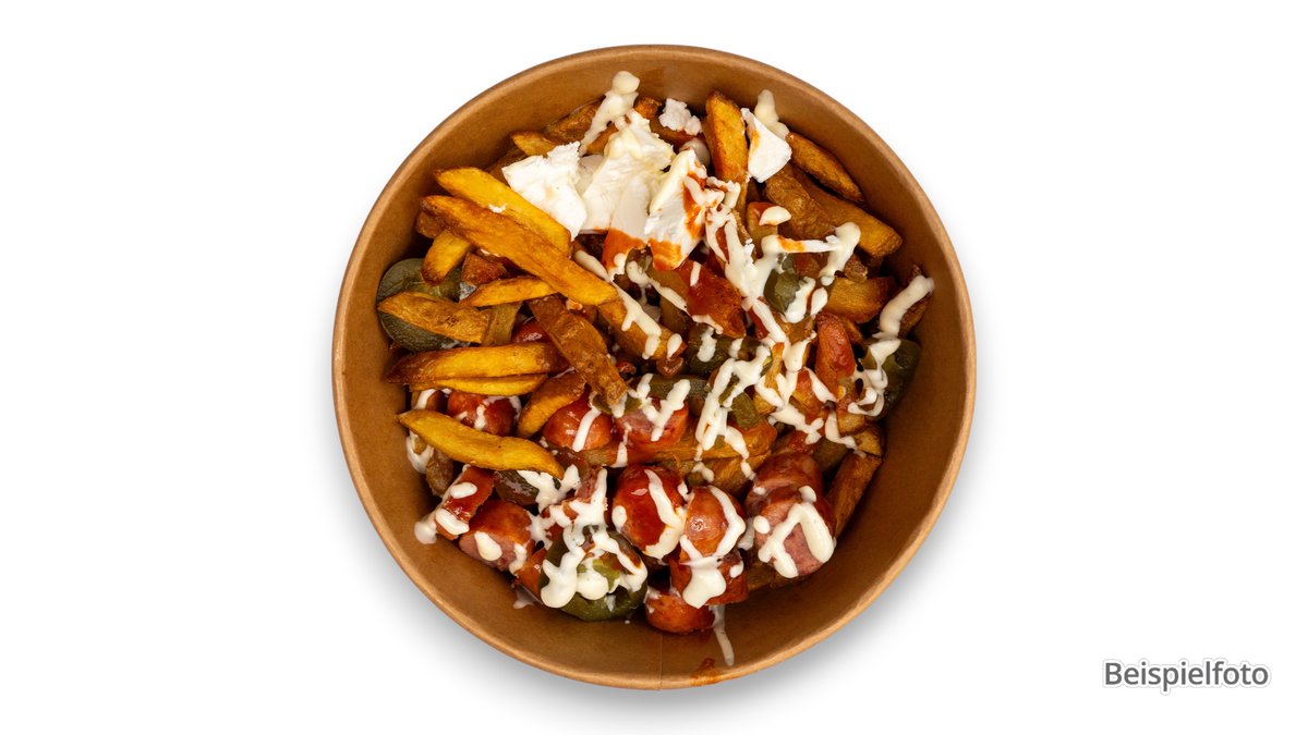 mit eigener Mousse, Schafskäse und Salsa Brava gefüllt