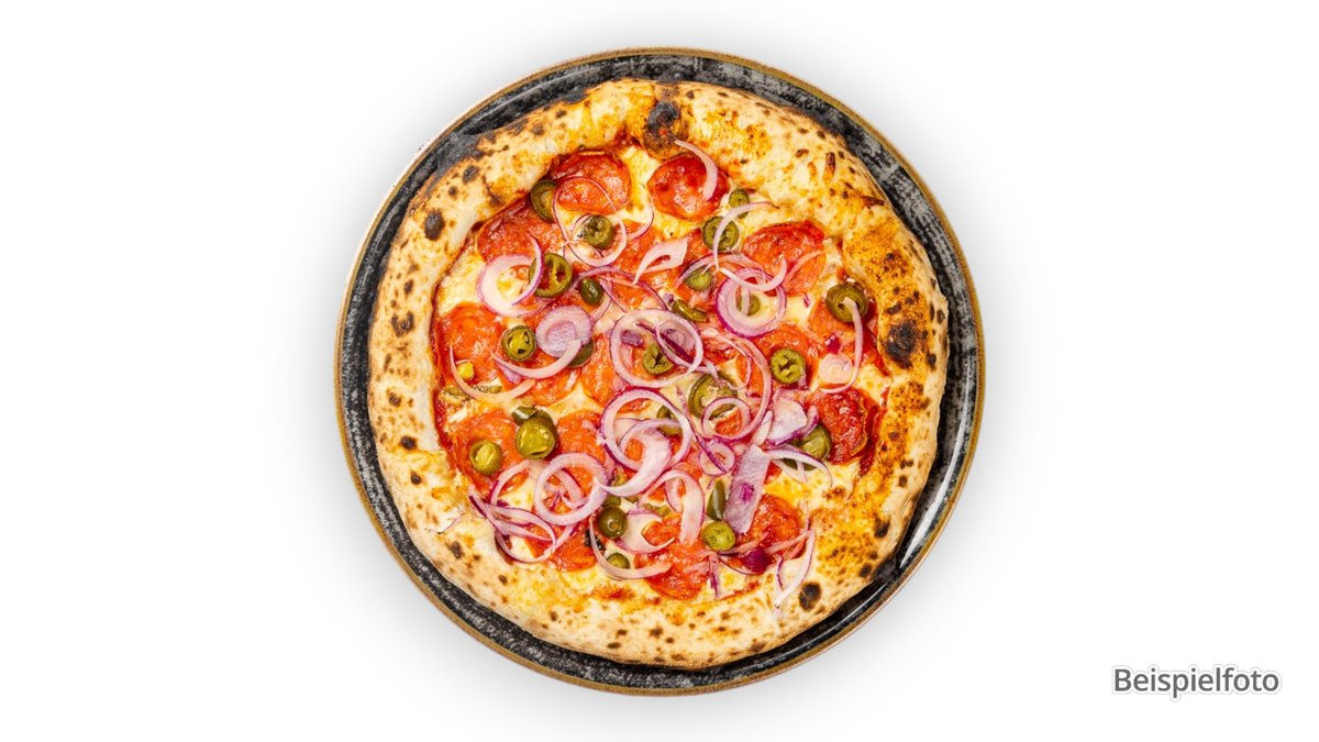 alle Pizzen werden in einer Größe deiner Wahl serviert („Pizza Schinken Zwiebeln” und „Pizza Salami Zwiebeln” werden nur in einer Größe serviert)