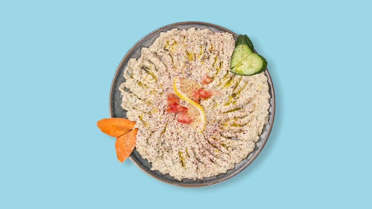 gegrillte Auberginen, Tahini, Joghurt, Knoblauch, Zitronensaft, Salz und Olivenöl
