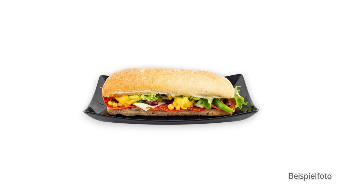 scharf gewürztes Rindfleisch, Jalapeños, Paprika, Sandwichbrot, Käse und Chili-Knoblauchsoße, leicht pikant, mit etwas Joghurt gemischt