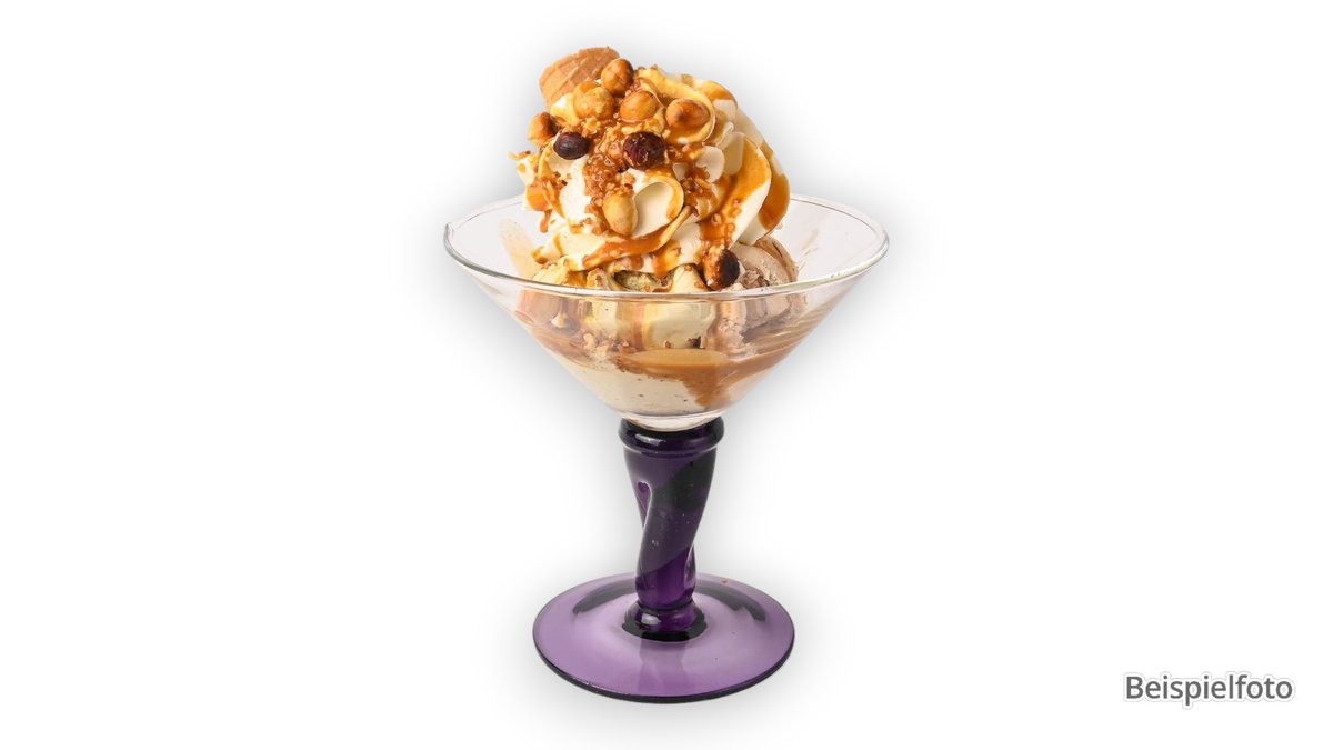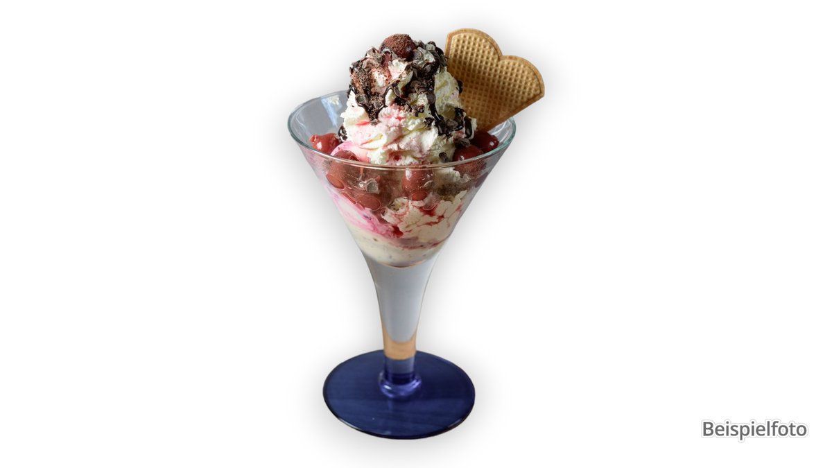 alle Eisbecher werden mit 3 Eiskugeln nach Wahl serviert ( außer Spaghettieis, Spaghetti Mutellina, und Spaghetti Amarena)