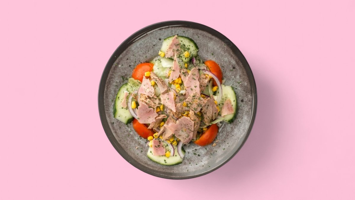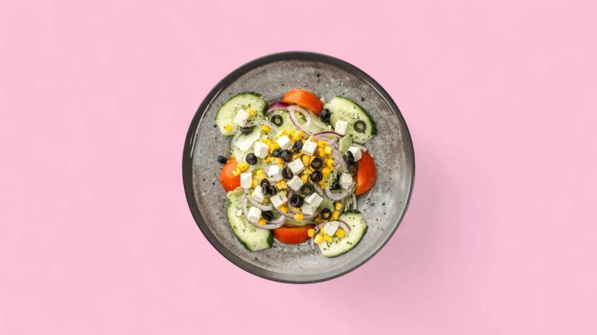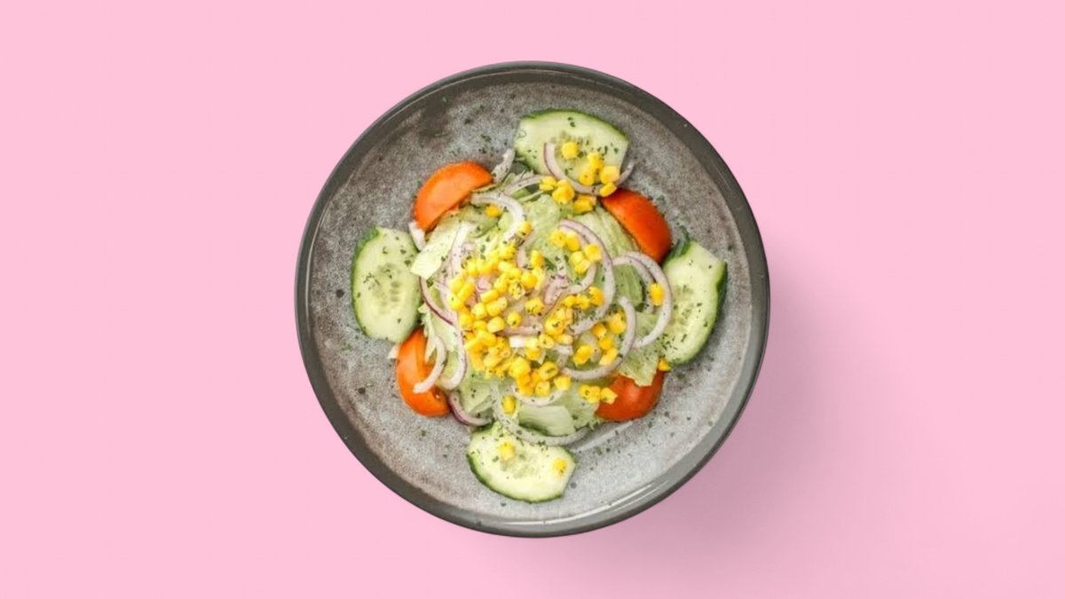 alle Salate werden mit Mais, Eisbergsalat, Tomaten und Gurken zubereitet und mit 10 Pizzabrötchen in einer Größe deiner Wahl serviert