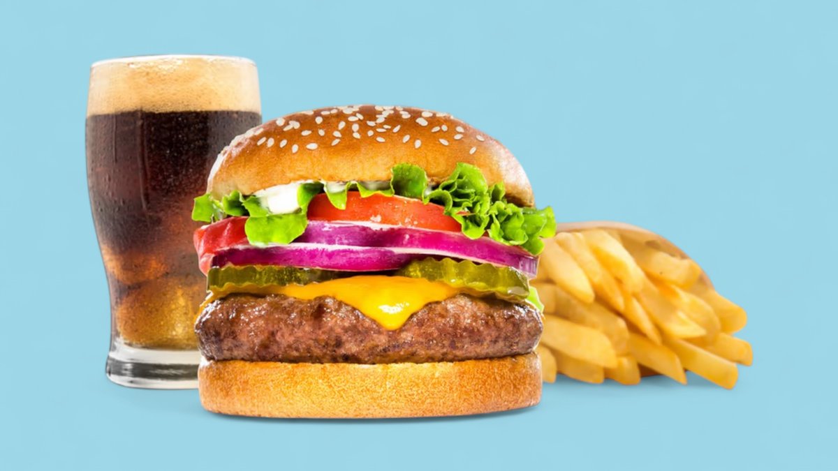 alle Menüs werden mit Pommes frites und einem 0,33 l Getränk serviert