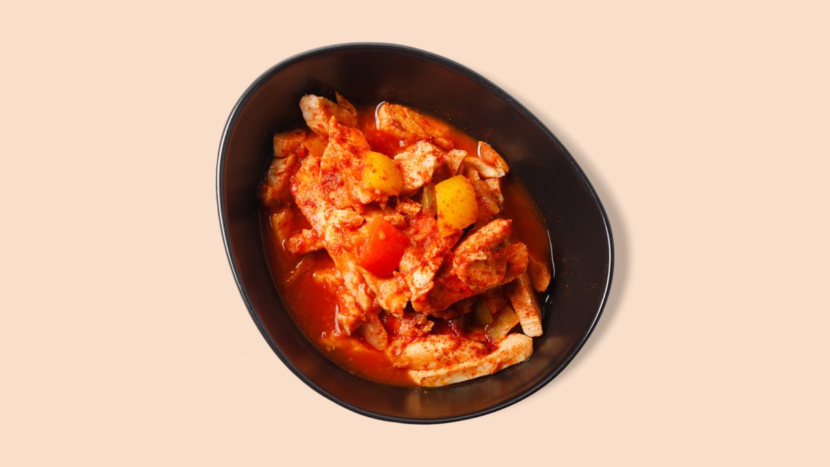 mit Hähnchenfleisch, Paprika, Zwiebeln und Tomatensoße