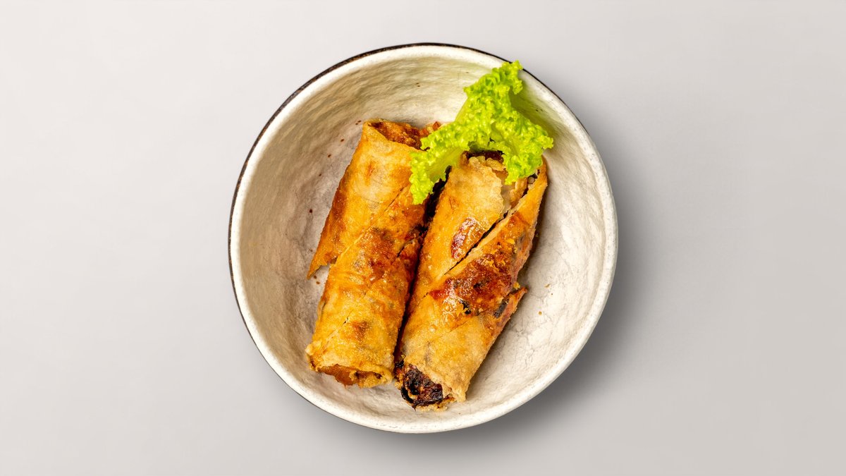 2 handgemachte Frühlingsrollen mit Sweet Chili Dip, Gemüse und einer Zutat deiner Wahl