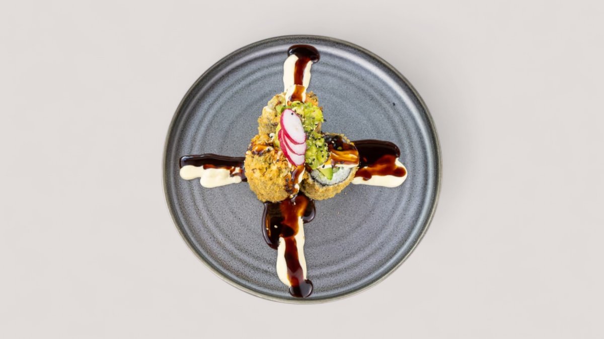 mit knusprigen Avocado- und Spargel-Tempura Kombo, cremigem Frischkäse, würziger Sesam-Unagi-Glasur und flambiertem Fisch deiner Wahl Enthält Alkohol, für Kinder und schwangere Frauen nicht geeignet