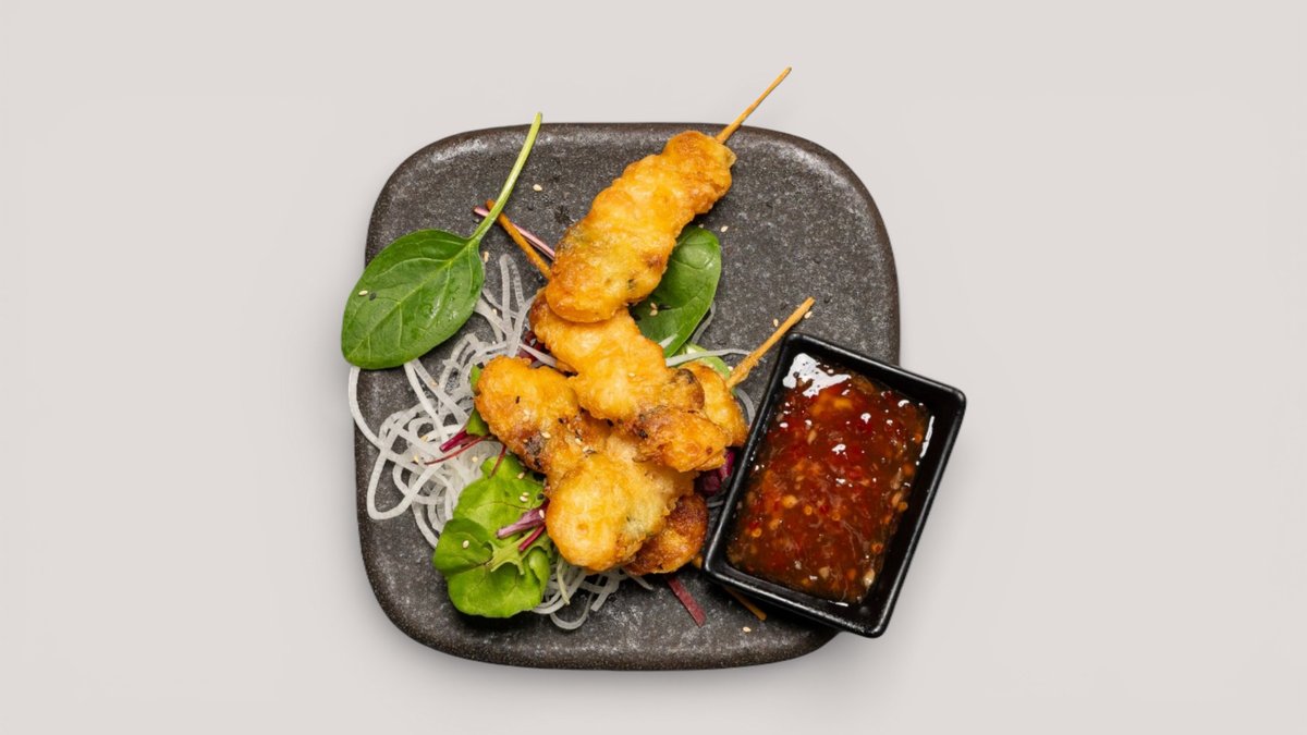 5 knusprig gebackene Shrimp-Pockets, serviert mit hausgemachter Yuzu-Mayonnaise