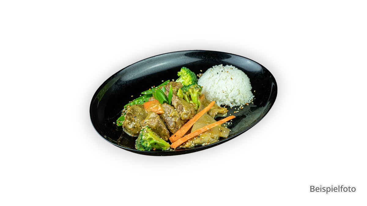 alle Gerichte werden mit Karotten, Zucchini und Champignons zubereitet („143. Com Rang“ wird ohne Champignons zubereitet)