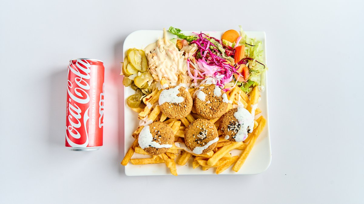 alle Menüs werden mit Pommes frites, einer Soße und einem Getränk 0,33 l deiner Wahl serviert („Teller Menü” und „Shish Taouk Menü” werden ohne Pommes frites serviert)