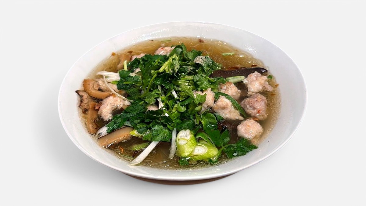 alle Gerichte werden mit Gllasnudeln in hausgemachter Brühe, Lauch und asiatischen Kräutern zubereitet