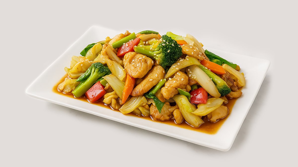 gebratenes Hähnchen mit asiatischem Gemüse