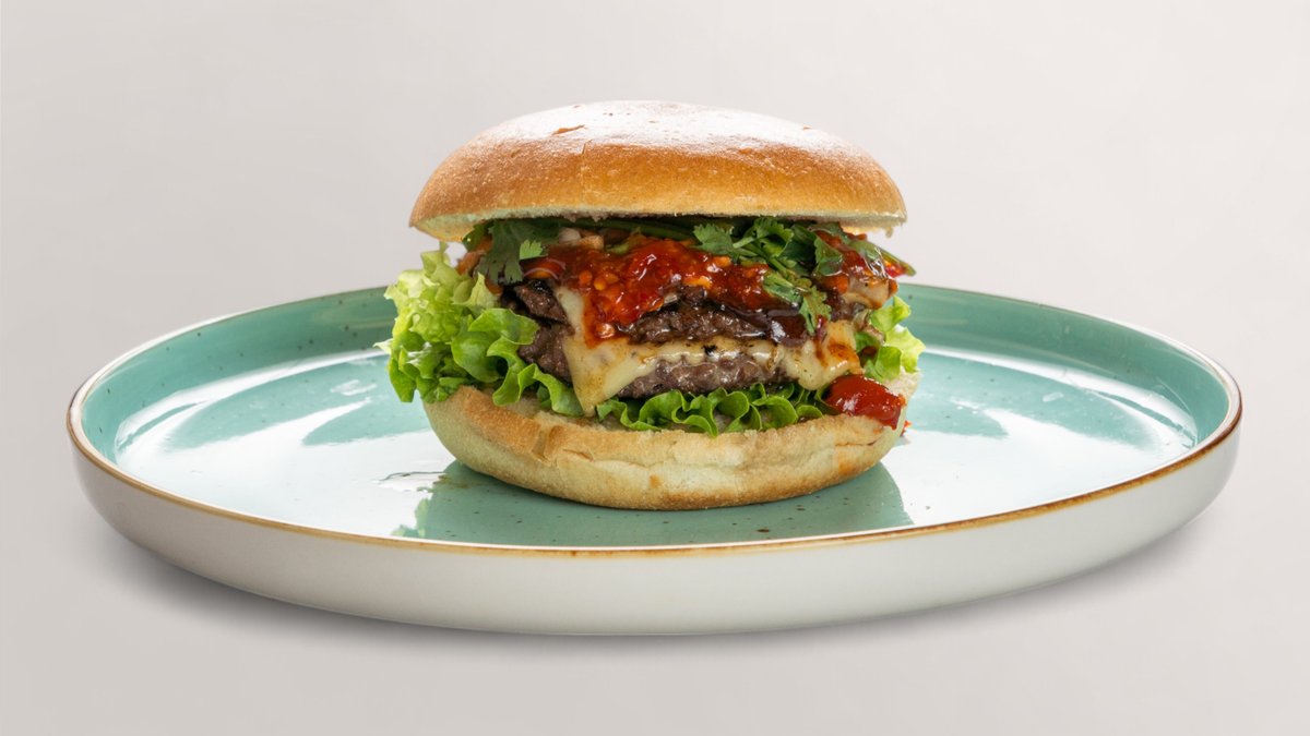 mit doppeltem Patty von einer Fleischsorte deiner Wahl, geschmolzenem Käse, frischem Salat und Signature-Soße