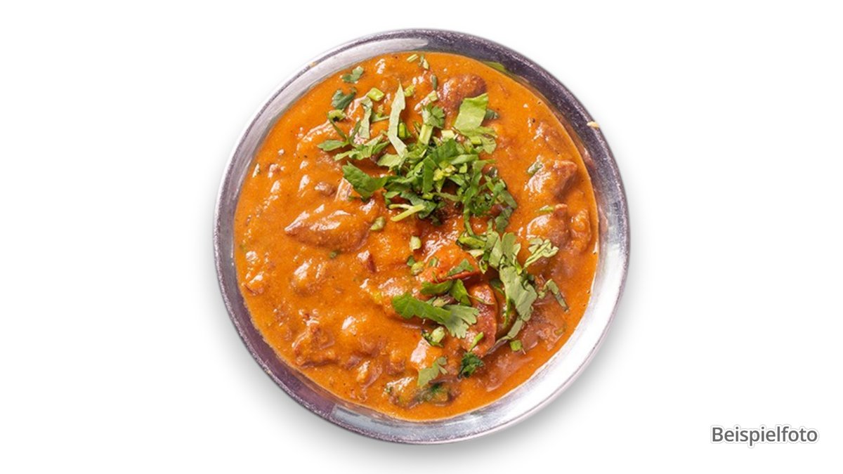Schmelzkäse in einer butterigen Tomaten-Curry-Sauce, verfeinert mit Butter
