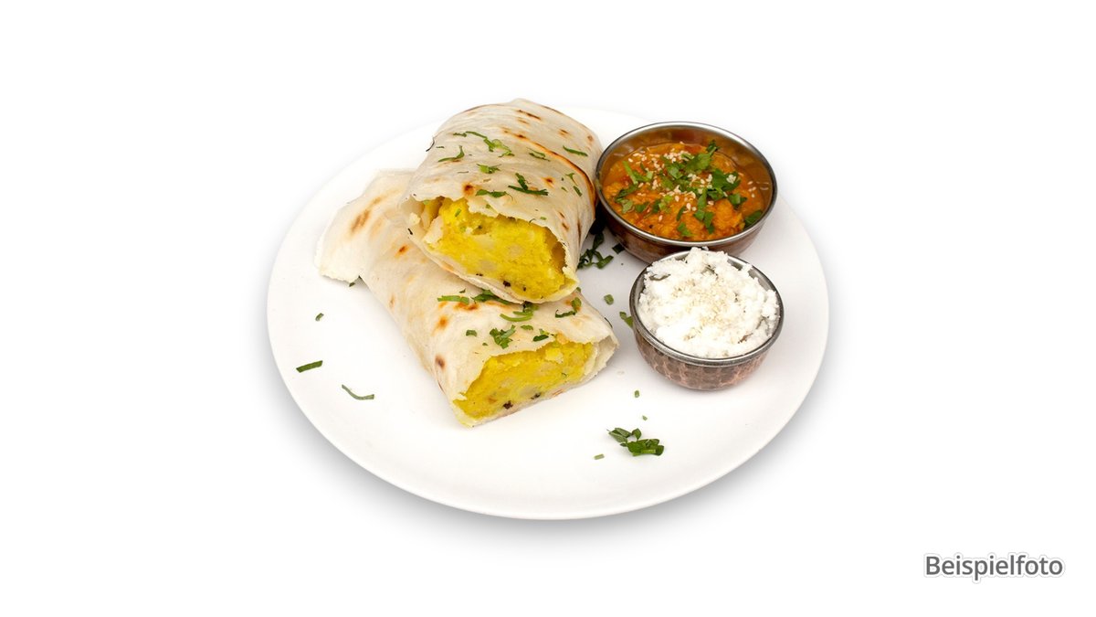 indisches Vollkornfladenbrot, gefüllt mit gewürzten Kartoffeln
