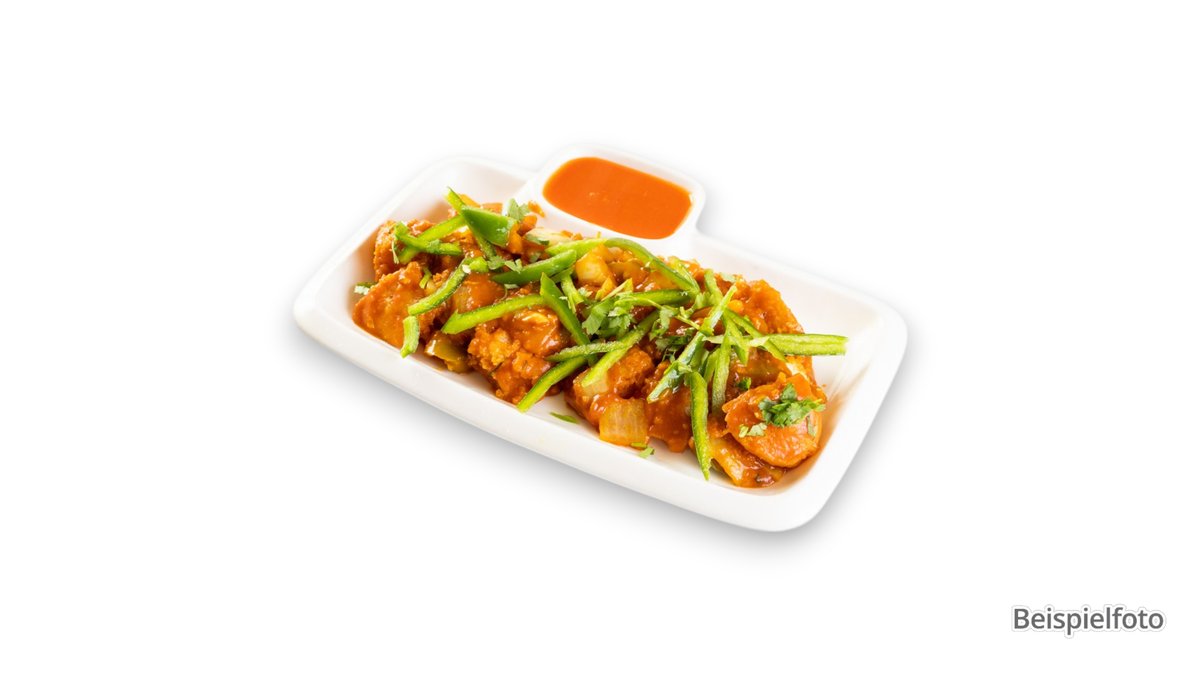 knuspriger Paneer in einer würzigen Soße mit Knoblauch und Ingwer