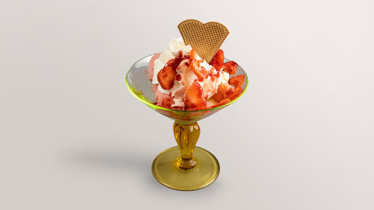 alle Eiskreationen werden mit frischen Erdbeeren und Sahne zubereitet