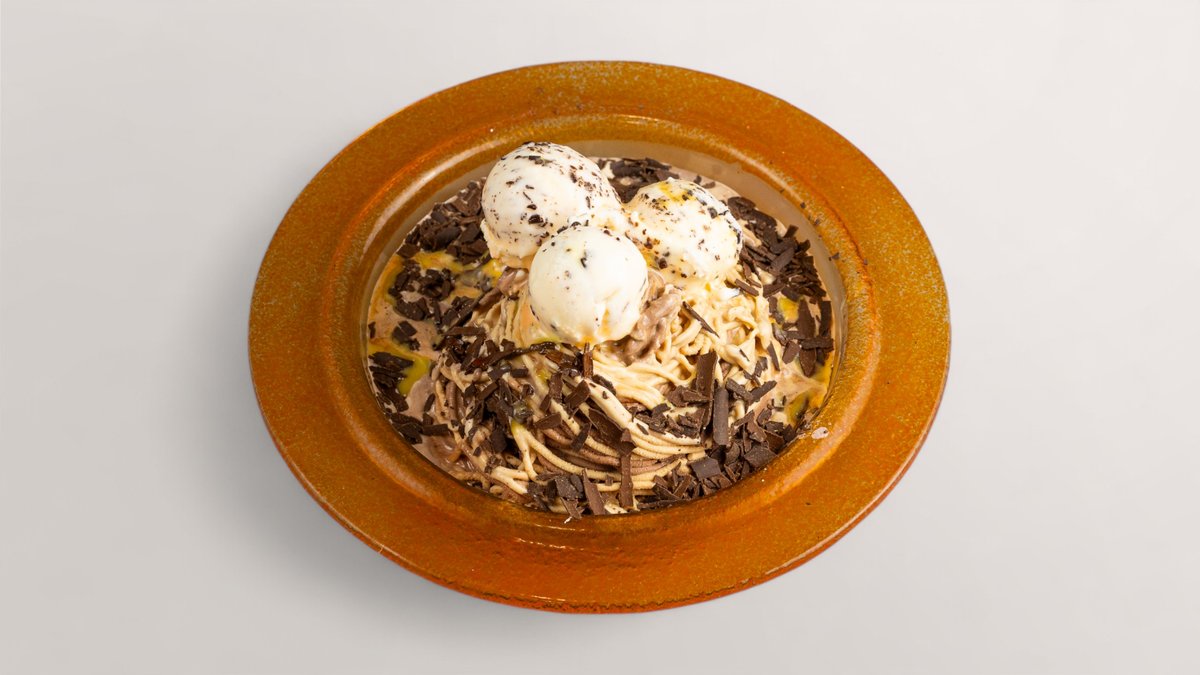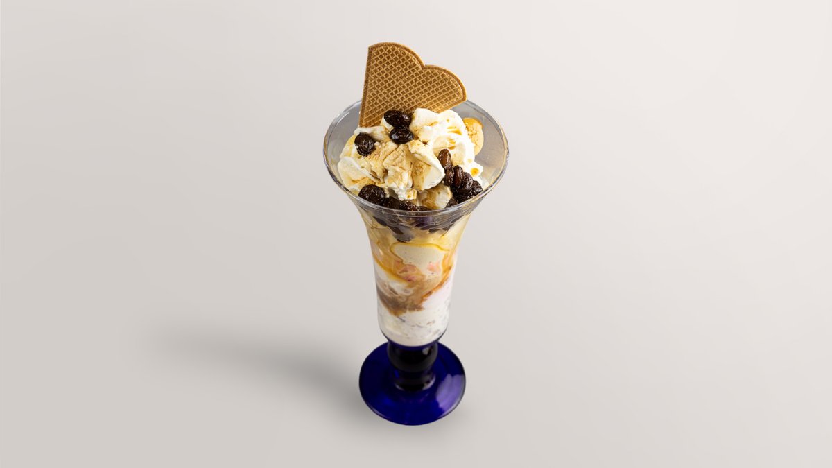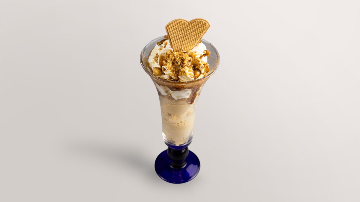 mit Schoko-, Nuss- und Stracciatella-Eis, dunklen Schokoraspeln und Eierlikör Das Gericht wurde mit Schokolade zubereitet und kann Spuren von verschiedenen Nüssen enthalten Enthält Alkohol, für Kinder und schwangere Frauen nicht geeignet