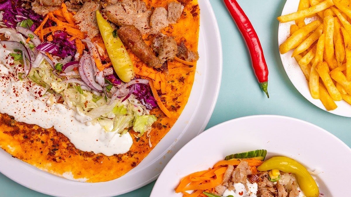 im Lahmacun gerollt mit Salat, Cacik und einer Soße deiner Wahl