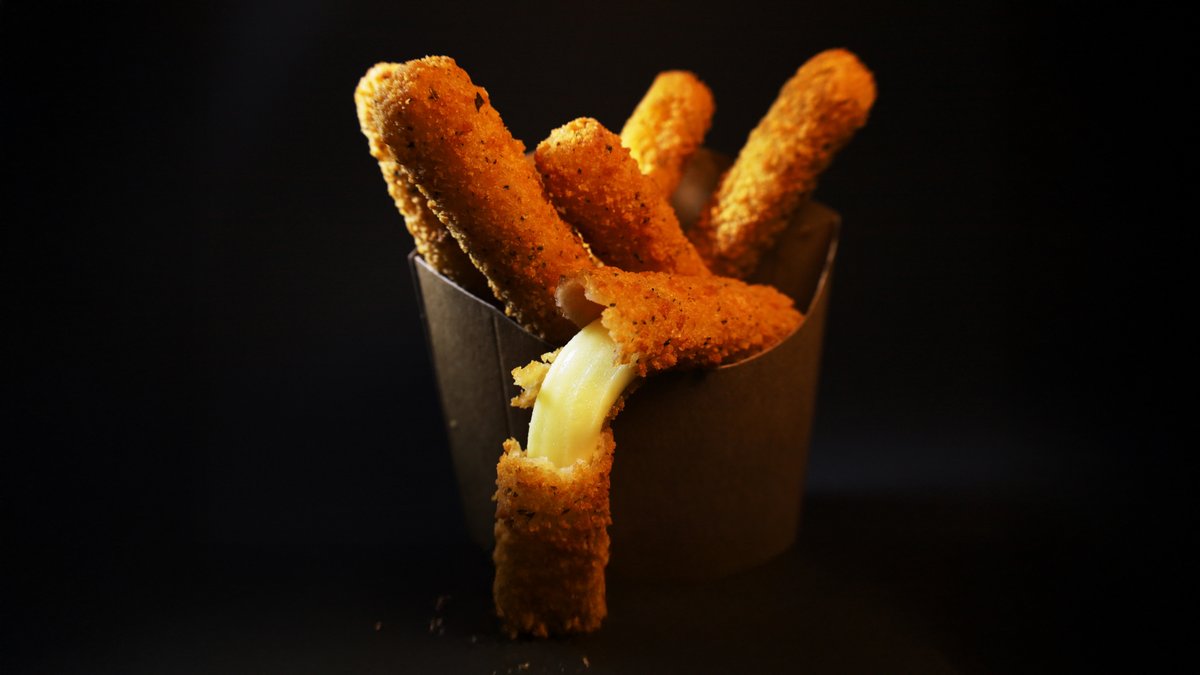 6x knusprige Mozzarella Sticks mit zart schmelzendem Käse im Inneren