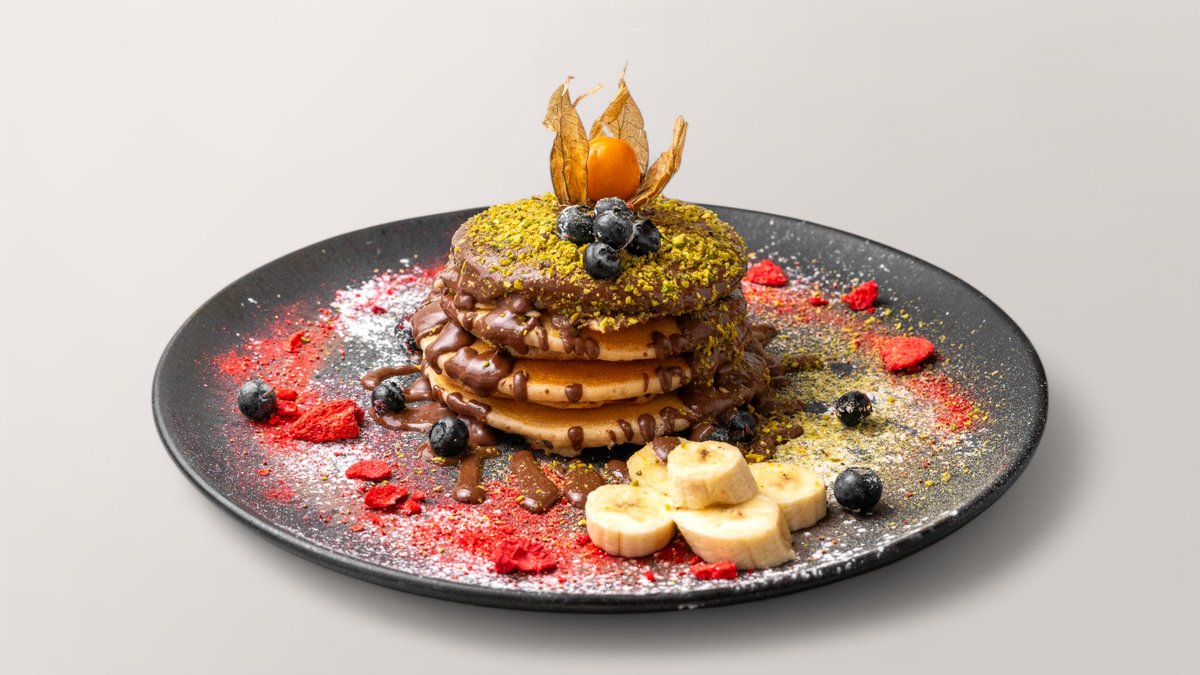 4 Pancakes, Nutella, Früchten, Pistazien