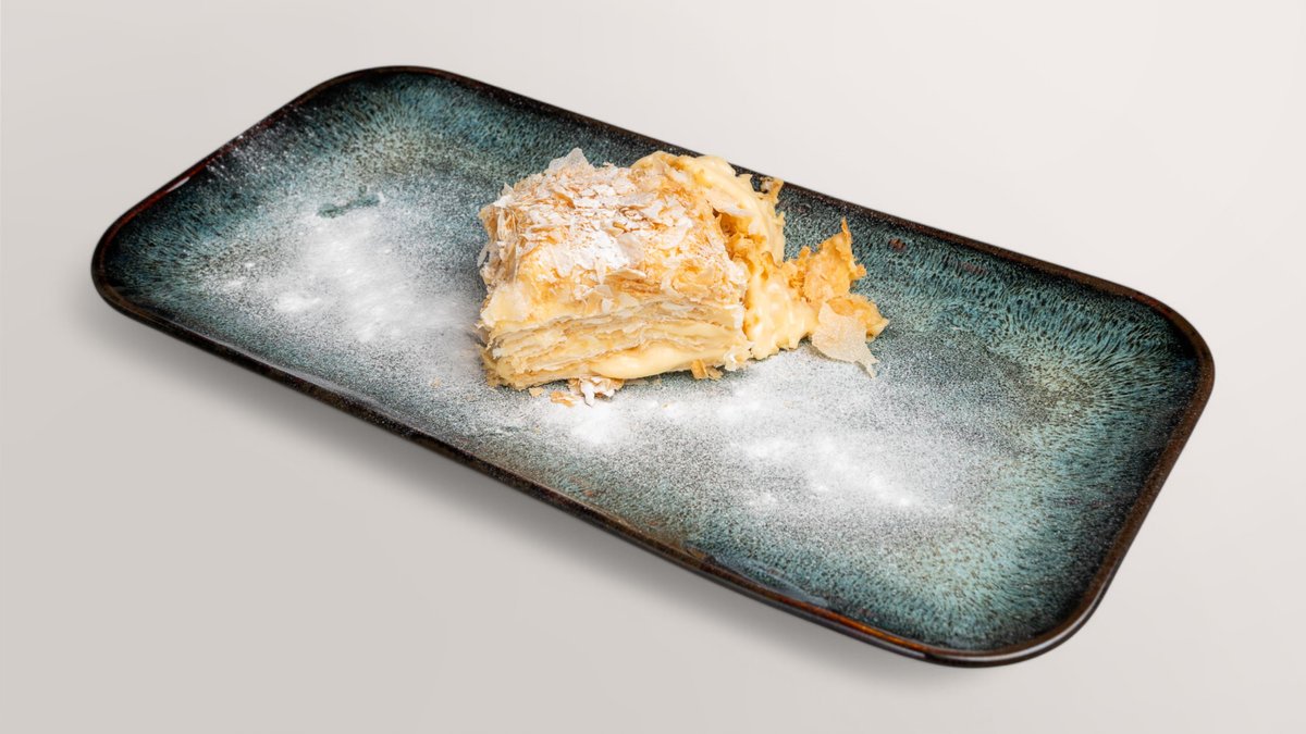 Blätterteigkuchen mit Sahne, Eiern, Zucker und Vanille