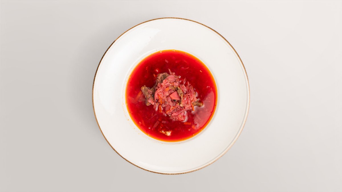 ukrainische Suppe mit Rindfleisch, Kartoffeln, Rote Beete und Kraut