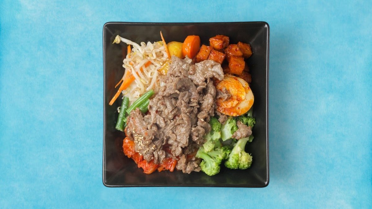 Bibimbap mit Bulgogi Beef – Koreanische Premium-Bowl Erlebe den authentischen Geschmack Koreas mit unserer saftigen Bulgogi-Variante – perfekt kombiniert aus mariniertem Rindfleisch (hala) und frischen Beilagen für ein unvergessliches Aroma-Erlebnis! Deine Bowl enthält: ✔ Zartes Bulgogi Beef (traditionell mariniert in Sojasauce, Sesam & Honig) ✔ Fluffigen Jasminreis als Basis ✔ Broccoli mit Knoblauchnote ✔ Hausgemachtes Kimchi (mittelscharf, fermentiert) ✔ Sämige Schmorkartoffeln mit karamellisierter Kruste ✔ Mayak Egg (perfekt cremiges, mariniertes Ei) ✔ Hausgemachte Ssamjang-Soße (würzig-nussig) ✔ Geröstetes Sesamöl für das typische Finish 🧑🍳 Küchengeheimnis: "Alles vermischen, damit sich die Aromen von Fleisch, Ei und Soße ideal verbinden!"