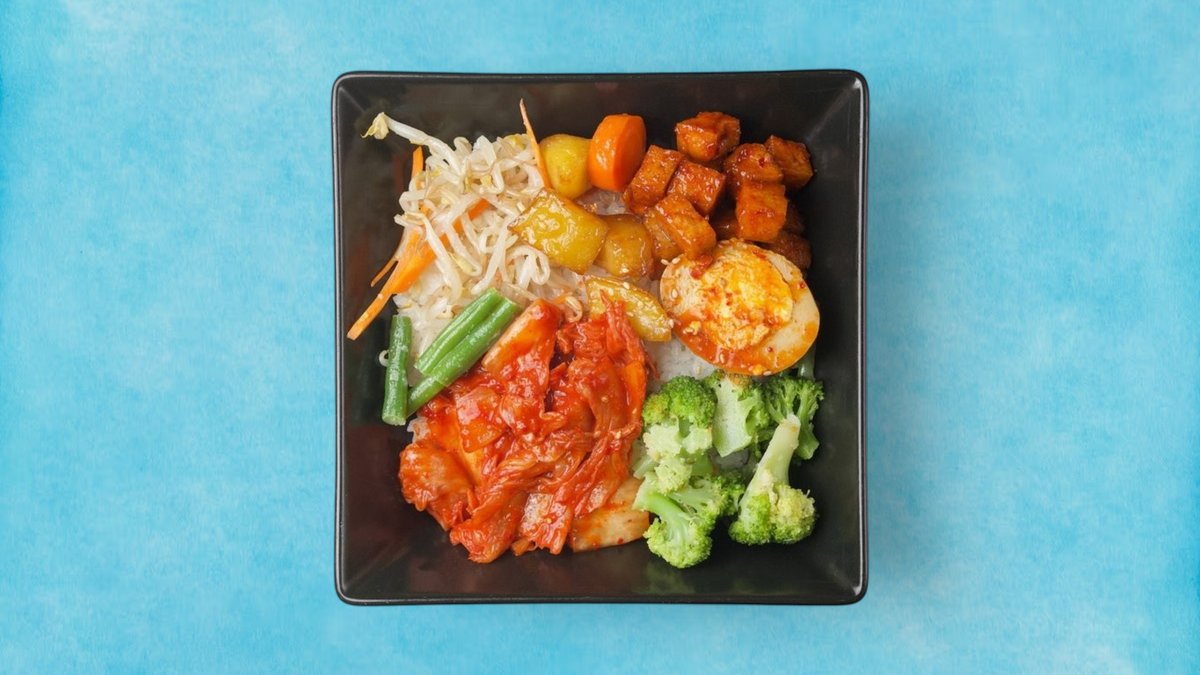 Bibimbap Vegetarisch – Koreanische Powerbowl Genieße unsere frische, vegetarische Interpretation des koreanischen Klassikers – perfekt balanciert zwischen knackig, pikant und umami! Deine Bowl enthält: ✔ Fluffigen Jasminreis als Basis ✔ Broccoli mit koreanischem Aroma ✔ Pikanten Tofu ✔ Hausgemachtes Kimchi (vegan, mittelscharf) ✔ Sämige Schmorkartoffeln mit karamellisierter Note ✔ Mayak Egg (perfekt mariniert) ✔ Hausgemachte Ssamjang-Soße (würzig-nussig) ✔ Geröstetes Sesamöl für das typische Aroma 🧑🍳 Küchentipp: "Alles gut vermischen – so entfaltet sich das volle Aroma!"