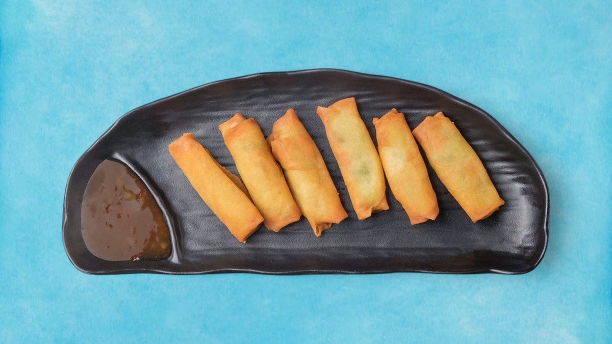 Vegetarische Frühlingsrollen (6 Stück) – Knuspriger Klassiker ✔ 6 frittierte Frühlingsrollen ✔ Knackige Gemüsefüllung (Kohl, Möhren) ✔ Perfekt goldbraun ausgebacken 🧂 Dazu: Süß-saure Dip-Sauce