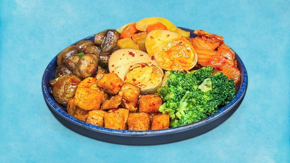 Koreanische Gemüse-Bowl – Hausgemachte Aromenvielfalt Deine perfekt abgestimmte Kombination aus traditionellen koreanischen Beilagen: ✔ Hausgemachtes Kimchi (14 Tage fermentiert) ✔ Gamja Jorim – würzige Kartoffeln in süßlicher Sauce ✔ Marinierter Tofu (pikant) ✔ Gebratene Champignons mit Knoblauchnote ✔ Mayak Eggs (marinierte Eier) ✔ Broccoli mit Knoblauch 🧑🍳 Genuss-Tipp: "Alles vermischen für das ultimative Geschmackserlebnis!"