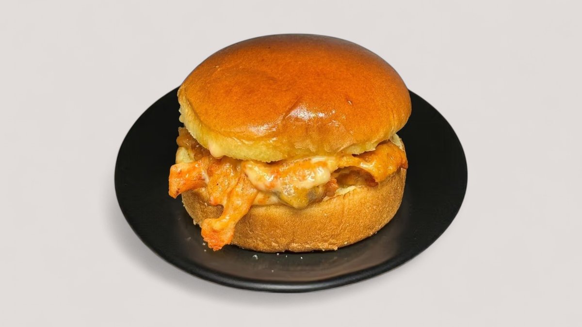 Koreanische Hühnchen-Burger (1 Stück)– Saftig & pikant würzig! Unsere hausgemachten Halal-Burger mit koreanischem Touch: ✔ pikant marinierte Hühnchenkeulenfilets (100% Halal) ✔ Sweet Chili-Mayonnaise (cremig-süß mit leichtem Kick) ✔ Buttriges Brioche-Bun (fluffig) ✔ Schmelzender Käse (Gouda)