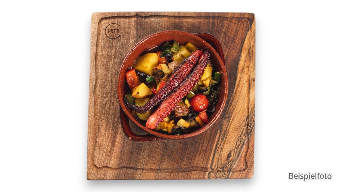 Oktopus mit Mandeln, Basilikum und Tomatenpesto