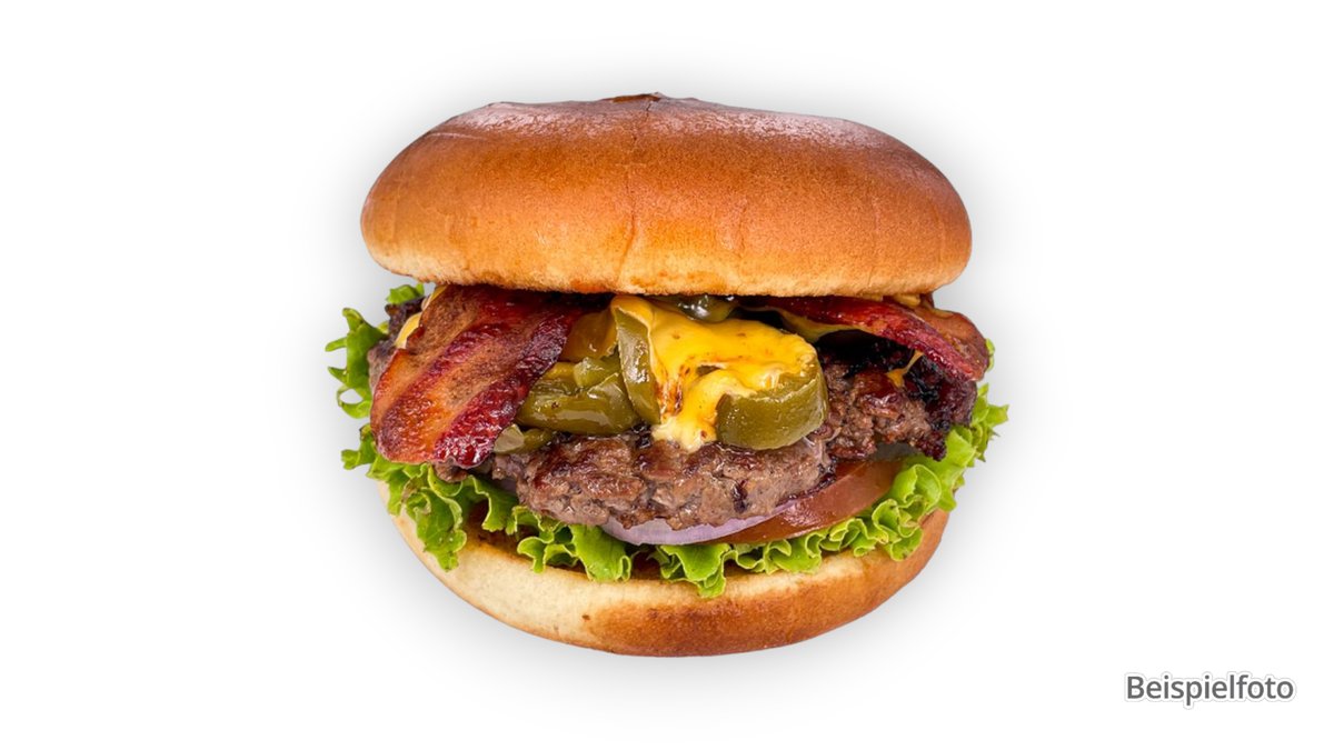 300 g, scharf mit Hähnchen-Patty, Rindfleischpatty und Jalapeños