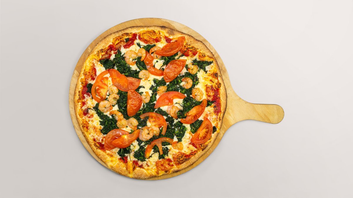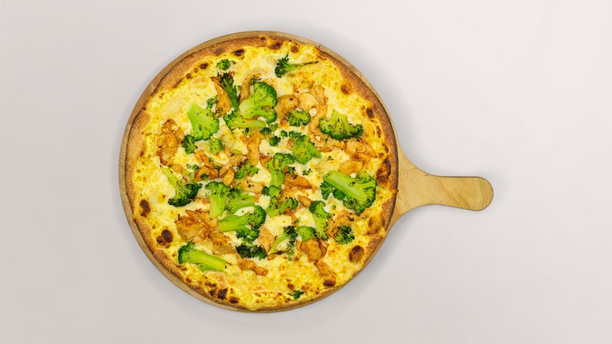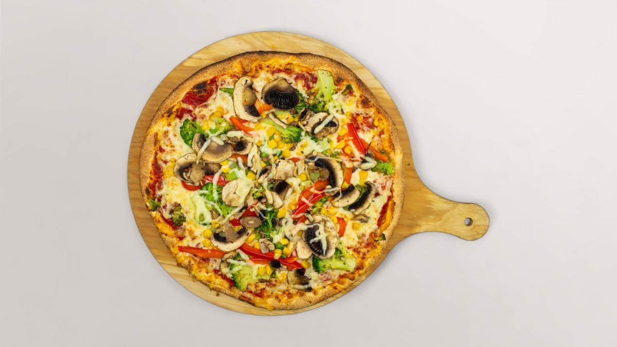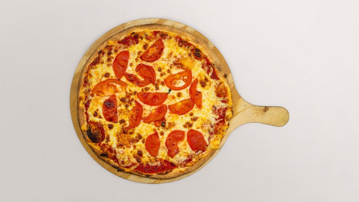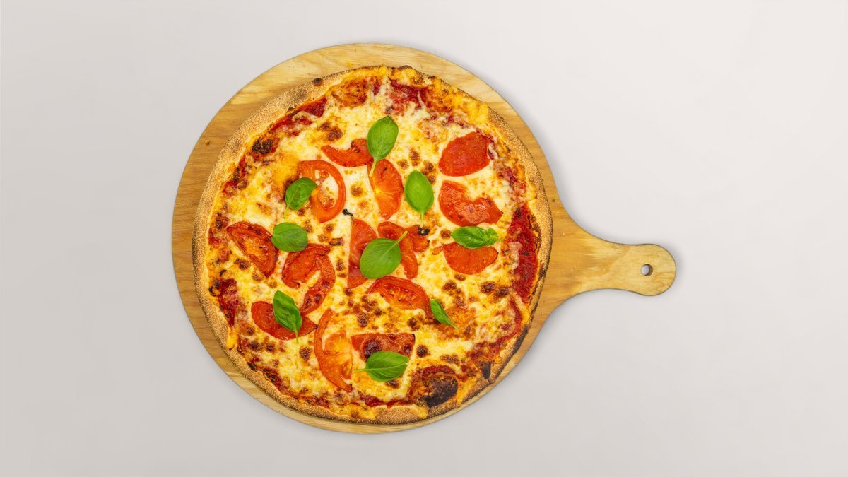 alle Pizzen werden mit würziger Tomatensoße und Käse zubereitet und in einer Größe deiner Wahl serviert („65. Blechpizza” wird nur in einer Größe serviert)