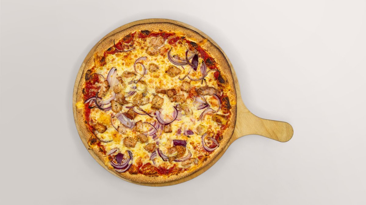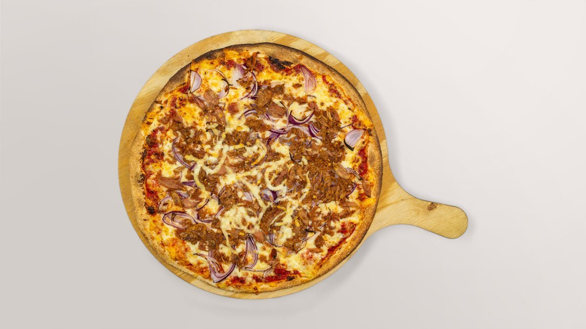 mit Dönerfleisch vom Hähnchen, Zwiebeln und Hirtenkäse