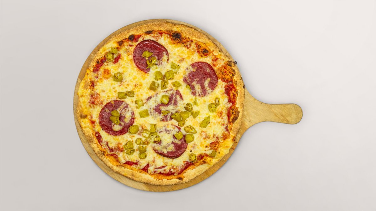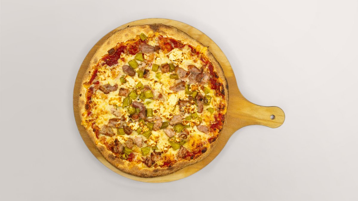 mit Gyrosfleisch vom Schwein, Peperoni und Hirtenkäse