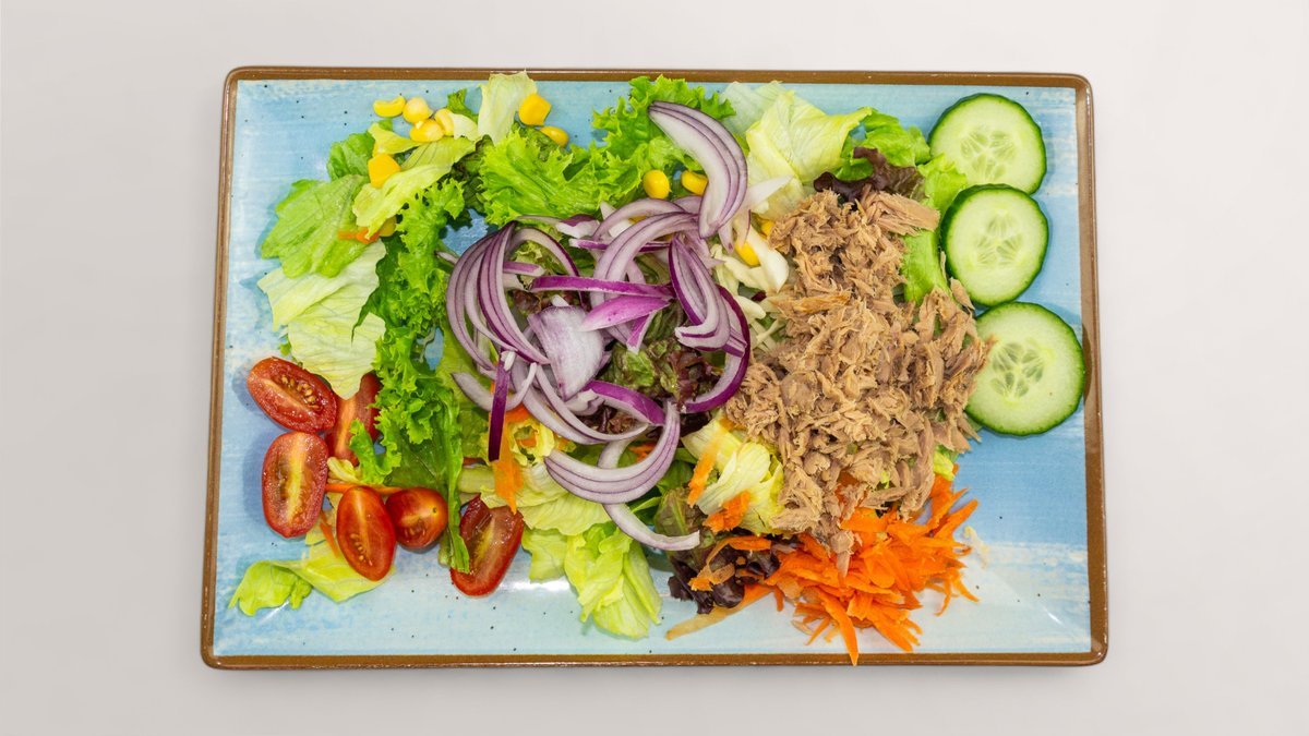 mit Thunfisch, Salami vom Rind und Zwiebeln