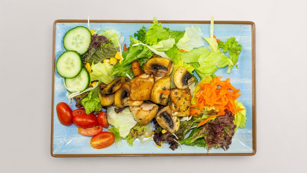 alle Gerichte werden mit gemischtem Salat zubereitet, mit 6 Pizzabrötchen (ohne Kräuterbutter) und einem Dressing deiner Wahl serviert