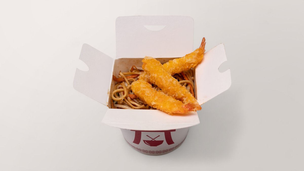 gebratene Nudeln mit 3 Stück Garnelen Tempura
