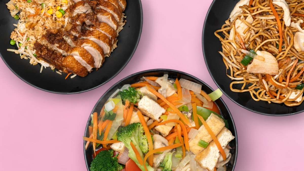 alle Gerichte werden mit Eiern, Gemüse, Sojasprossen, Karotten und einer Zutat deiner Wahl zubereitet