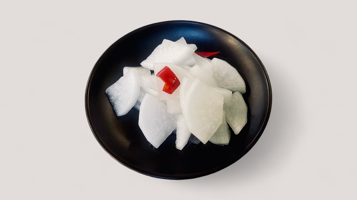 fermentiert Rettich mit Salz, Zucker, Wasser, Essig, Chilischoten.