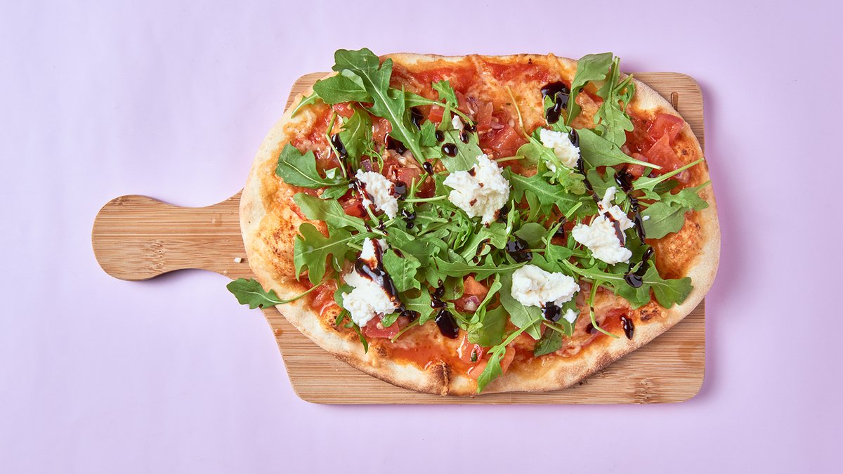 Mit Tomatensauce, Käse, Saltufo, Rucola und Parmesan