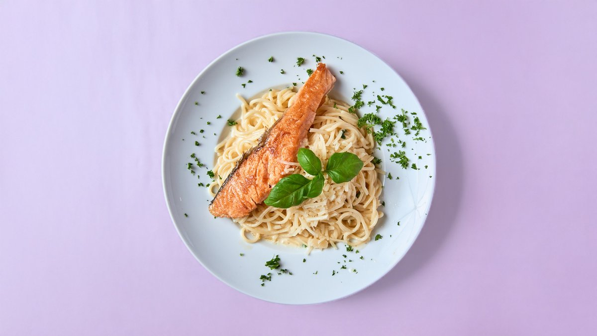 mit Sahnesoße, Käse, Lachs und Nudelsorte deiner Wahl