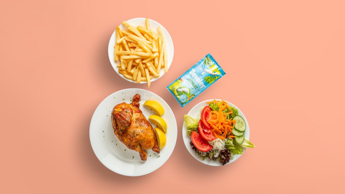 2x 1/2 Grillhendl 2x Pommes frites 2x Dips deiner Wahl
