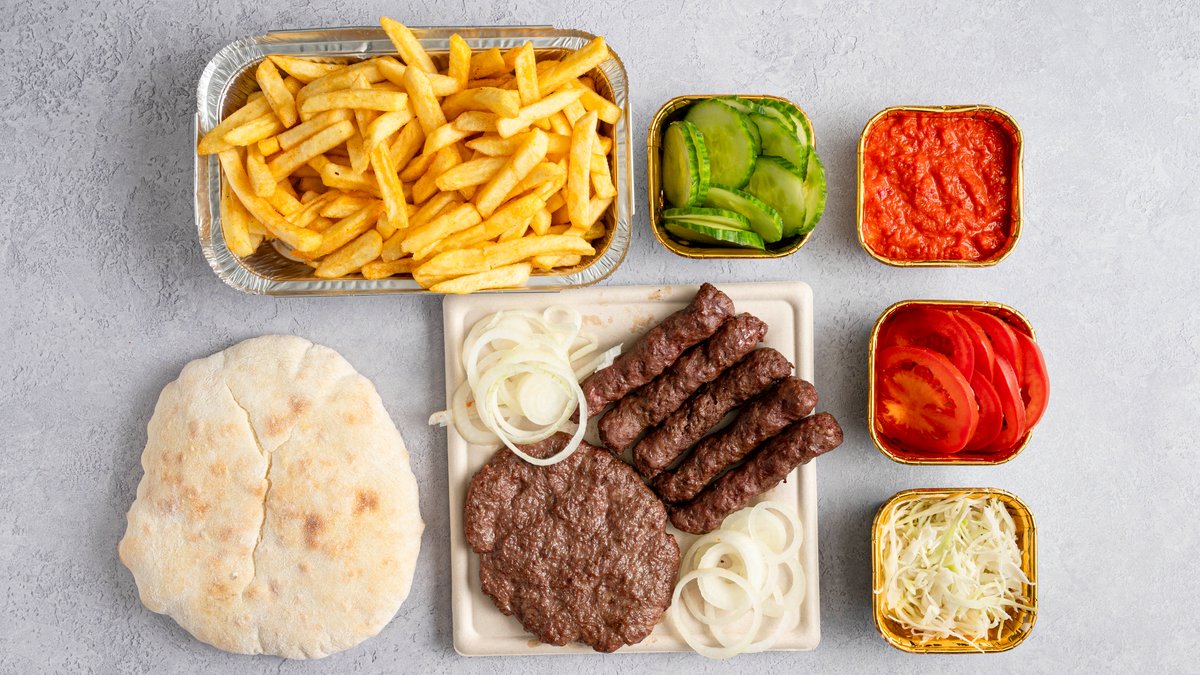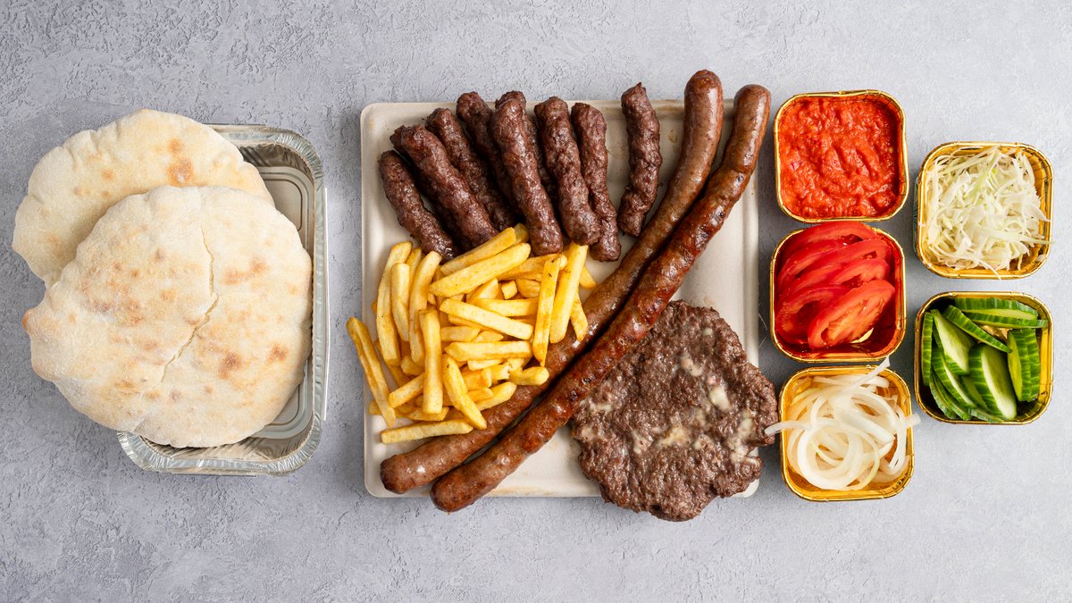 10x Cevapi vom Rind 1x Big Brother of Burger vom Rind 2x hausgemachte Balkanwürste vom Rind 1x große Pommes frites 2x hausgemachte Fladenbrote