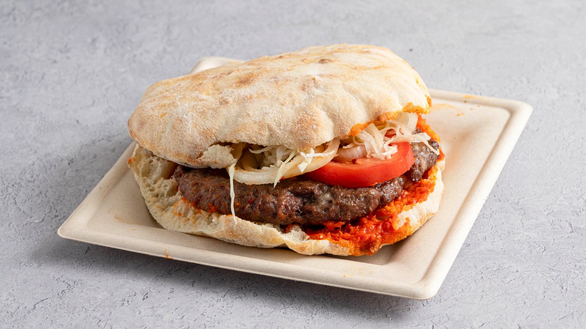 5 Stück 175 g Rindfleisch im hausgemachten Fladenbrot