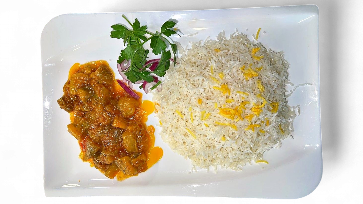 alle Gerichte werden mit gebackenem Basmatireis serviert